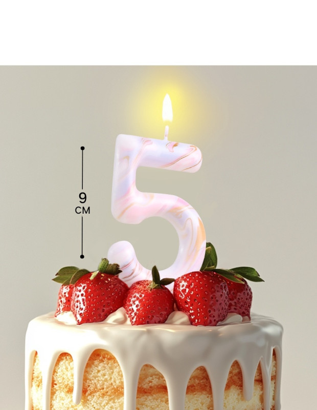 6990824 Свеча ГИГАНТ в торт "Цифра 5 Белый мрамор" Высота 9 см.