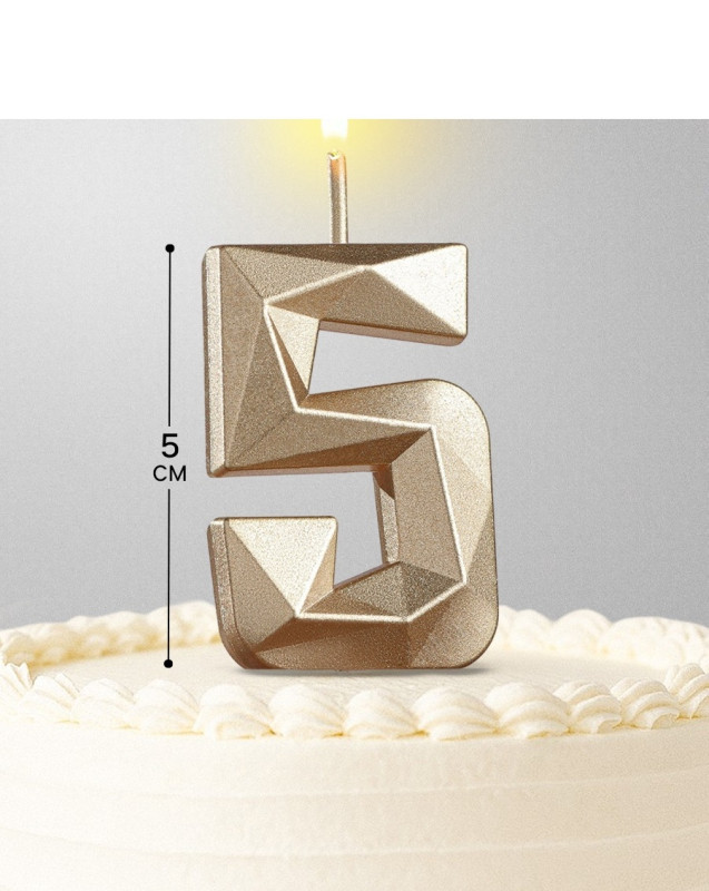 9338096 Свеча в торт "Цифра 5 Золотистая" на шпажке Высота 4 см.
