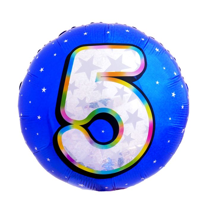 Ч 00015/С Фольгированный круг "Цифра 5. Синий перламутр" Диаметр 45 см.