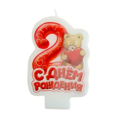 1003753 Свеча в торт "Цифра 2.С Днем рождения.Мишка с сердечком"