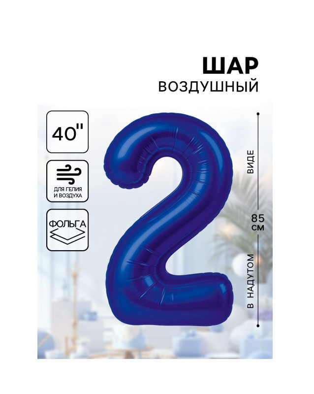 10930106 (АГ 941230) Темно синяя Slim фольгированная "Цифра 2" Высота 85 см.