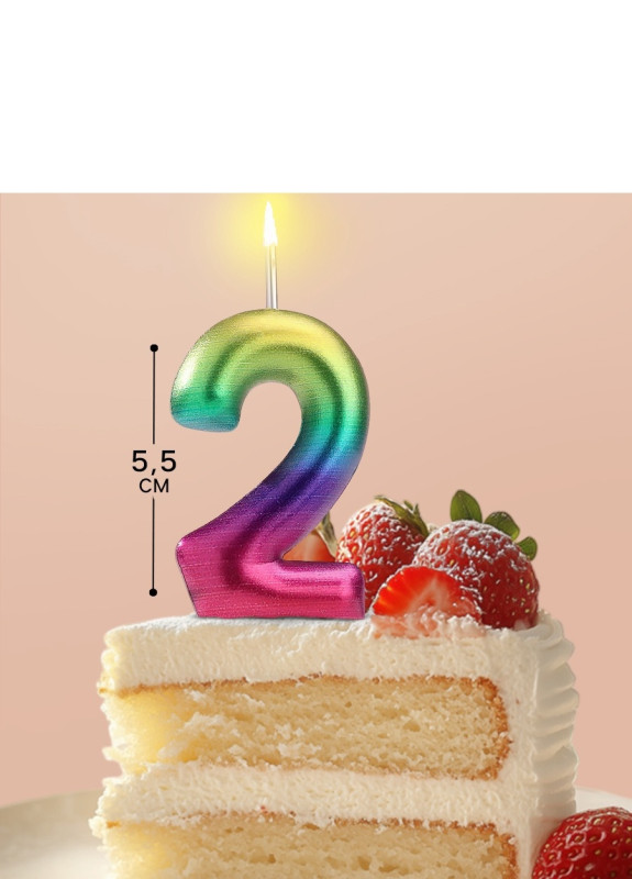 120314 Свеча в торт "Цифра 2.Градиент" Высота 5 см.