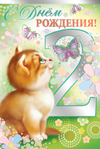 13.687.00 Открытка "2 годика.С Днем рождения! Котенок" Формат А5