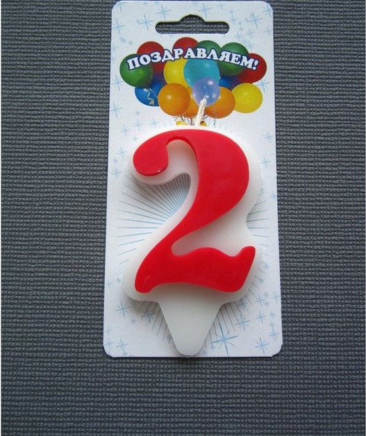 1623589 Свеча в торт "Цифра 2. Красная волна на белом"