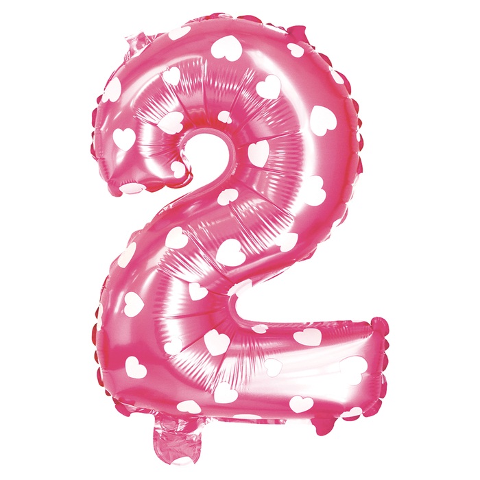 2769728 Розовая с сердечками фольгированная "Цифра 2" Высота 102 см. Китай (под воздух)