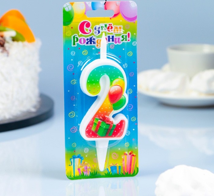 4237770 (5952) Свеча в торт "Цифра 2.Подарок с шариками"