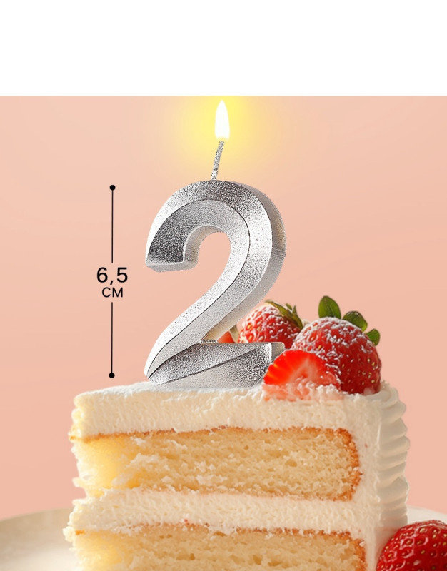 5928496 Свеча в торт "Цифра 2" Цвет серебристый металлик Высота 6,5 см.