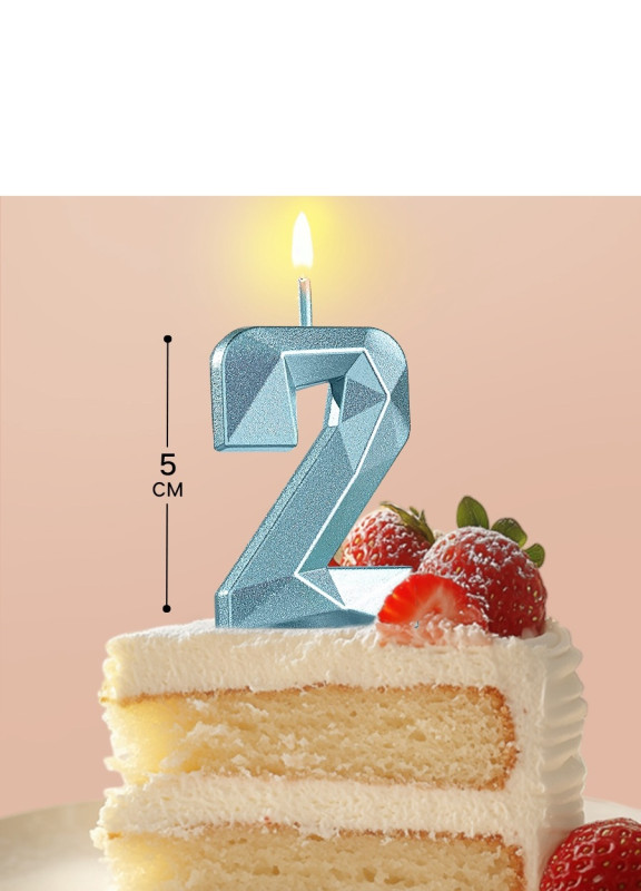 9338073 Свеча в торт "Цифра 2. Серо - голубая" на шпажке. Высота 4 см.