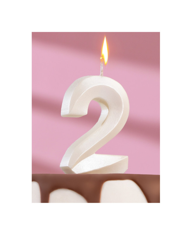 9562152 Свеча в торт "Цифра 2 Жемчужно белая" Высота 7 см.