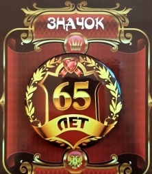ФГ ZNMET00280 Значок металл "65 лет!" Крепление на булавку. Диаметр 5,5 см.