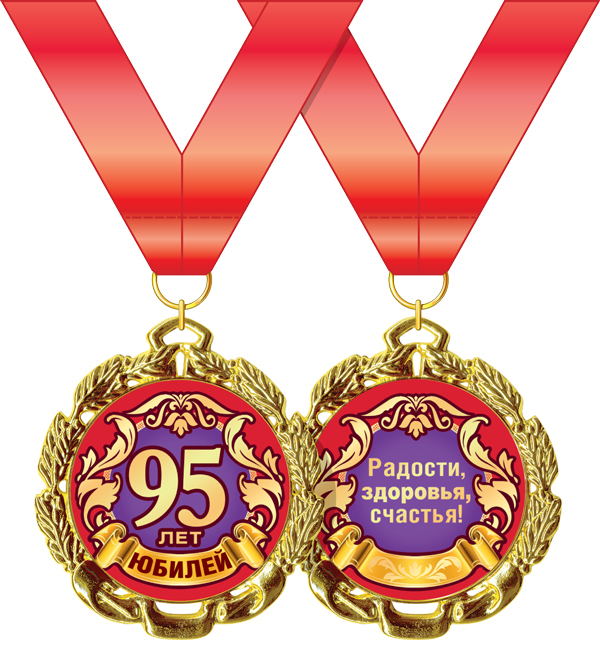 58.53.247 Медаль металл "С Юбилеем 95 лет!" на ленте.Диаметр 6,5 см.