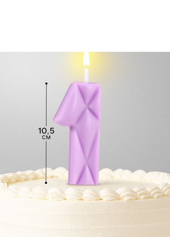 10603309 Свеча в торт "Цифра 1 Сиреневая" на шпажке. Высота 5 см.