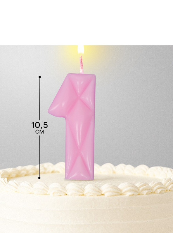 10603332 Свеча в торт "Цифра 1 Розовая" на шпажке Высота 5 см.
