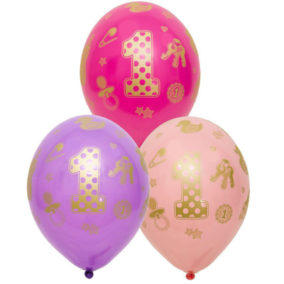 1103-1924 Шарик 5-сторонний "1 годик" для девочки. Диаметр 35 см.Бельгия