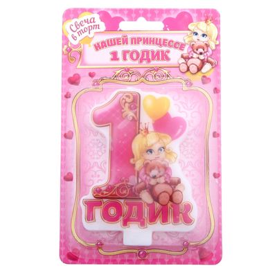 1169589 Свеча в торт "Нашей принцессе 1 годик.Малышка с шариками"