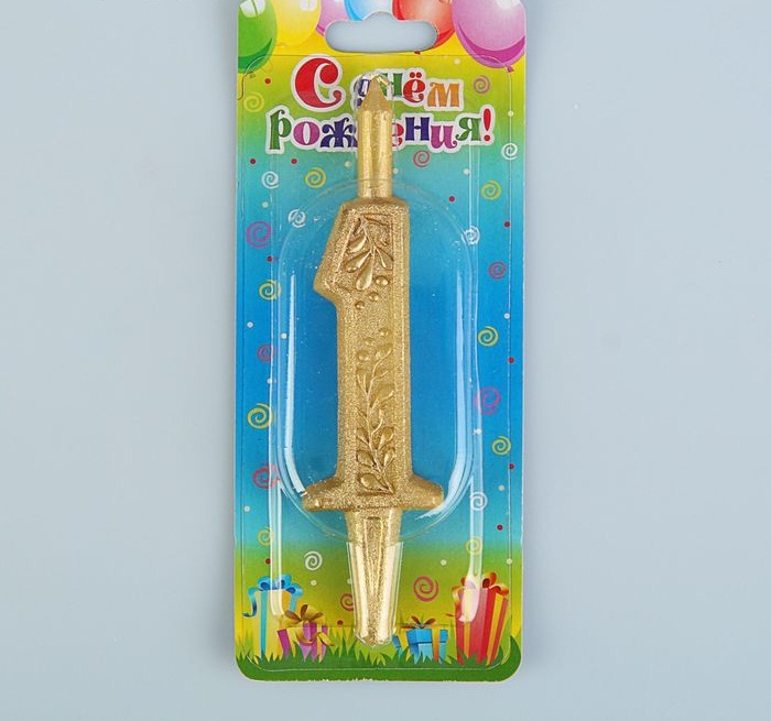 1221541 (3401) Свеча в торт "Цифра 1. Золотой узор"