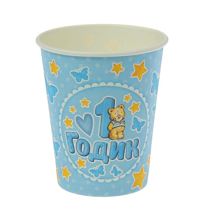 1227836 Набор голубых стаканов "1 годик: Мишка" (10 шт.) для мальчика