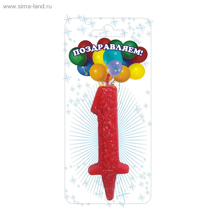 1249793 Свеча для торта "Цифра 1. Красный узор"