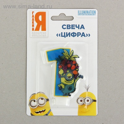 1262007 Свеча для торта "Цифра 1. Миньоны"