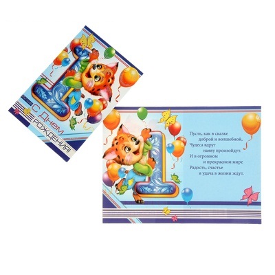 1267331 Открытка "1 годик.Тигр с шариками" Формат А5