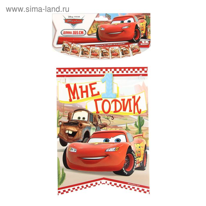 1282202 Гирлянда - вымпел " Мне 1 годик. Тачки" Длина 165 см.