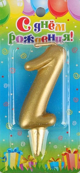 1411293 (3081) Свеча для торта "Цифра 1.Золотой металлик" Высота 7 см.