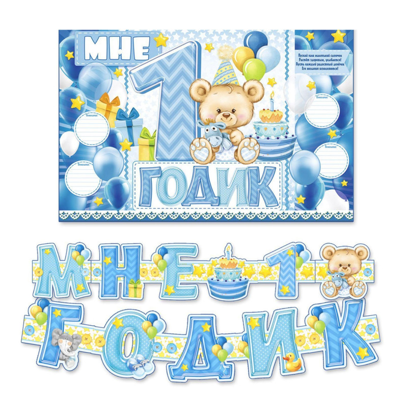 1945106 Набор для мальчика "Мне 1 годик!": Гирлянда + плакат 60 х 40 см.