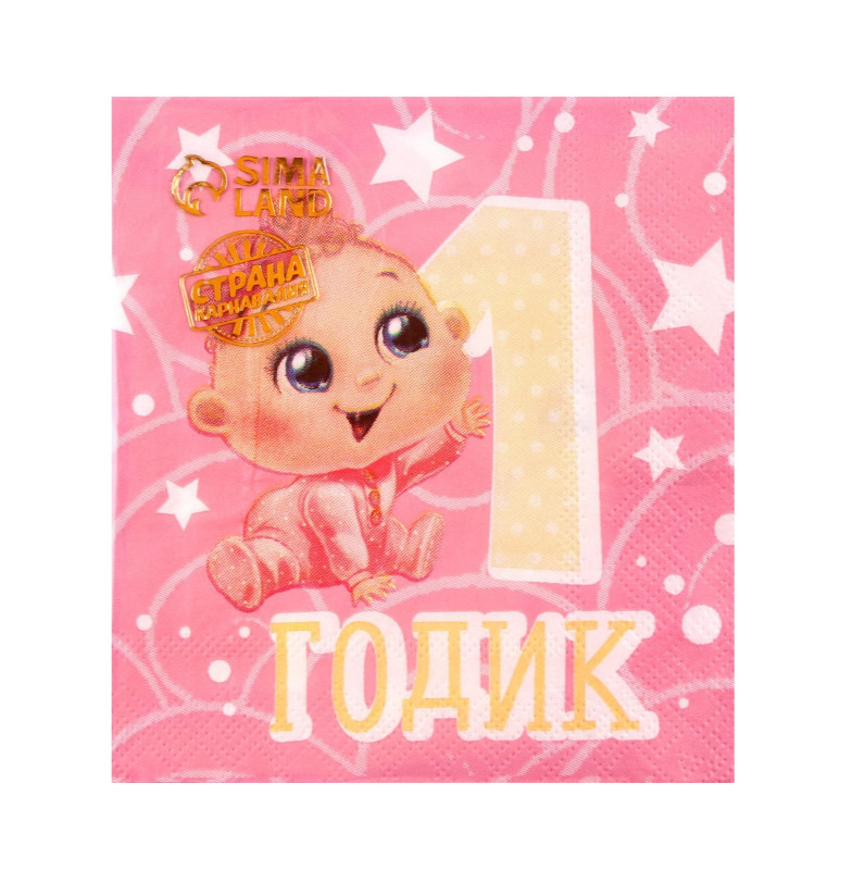 2453262 Набор розовых салфеток "1 годик" ( 20 шт.) Размер 25 х 25 см.