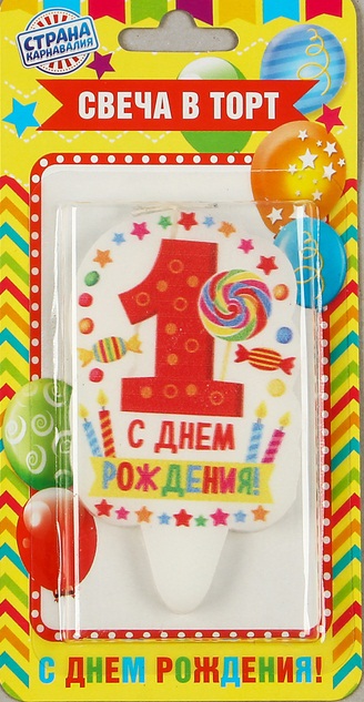 2840225 Свеча в торт "Цифра 1. С Днем рождения!" красная