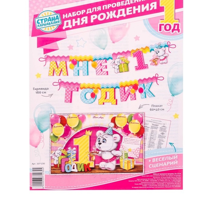 3371230 Набор для девочки "Мне 1 годик" для проведения детского праздника
