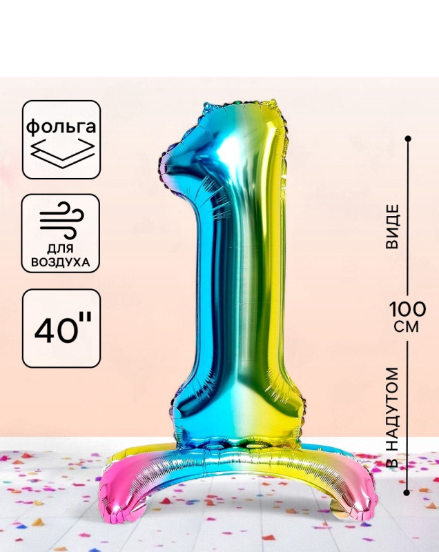 5634651 Градиент фольгированная "Цифра 1" на подставке под воздух Высота 100 см.