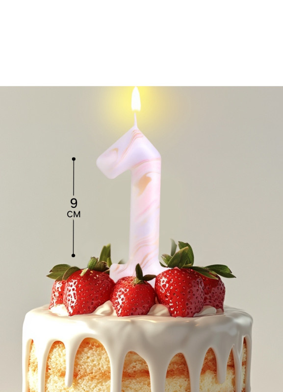 6990820 Свеча ГИГАНТ в торт "Цифра 1 Белый мрамор" Высота 9 см.