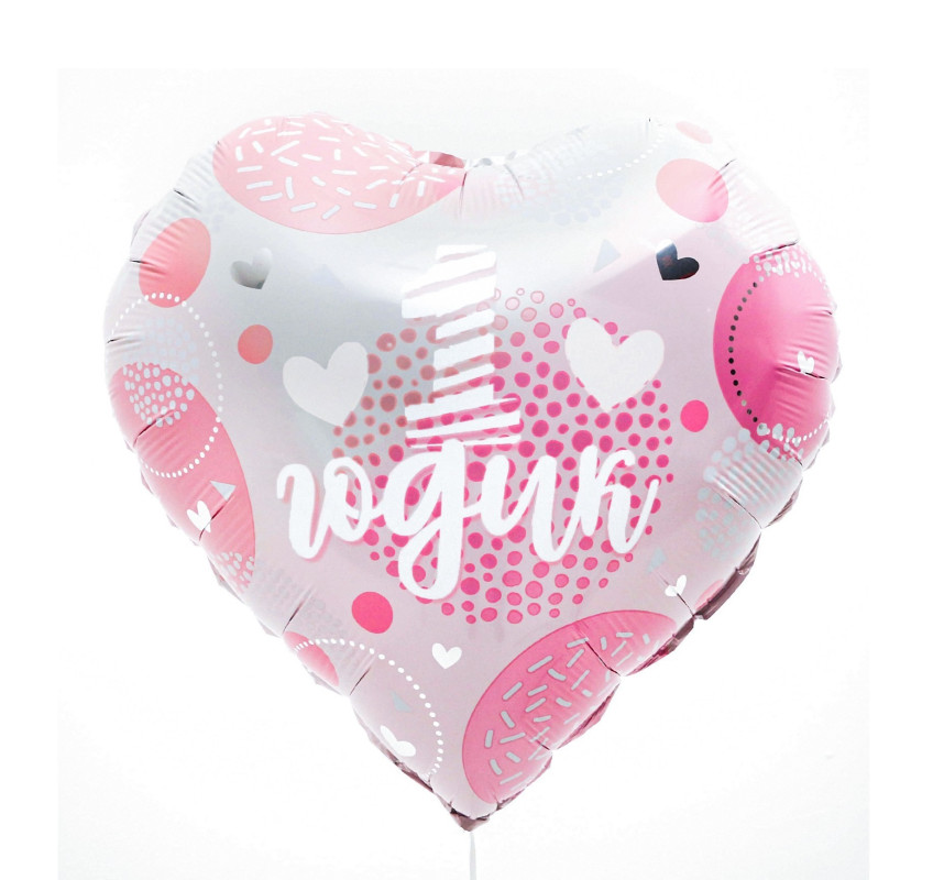 9075995 Розовое фольгированное сердце "1 годик" D 45 см.