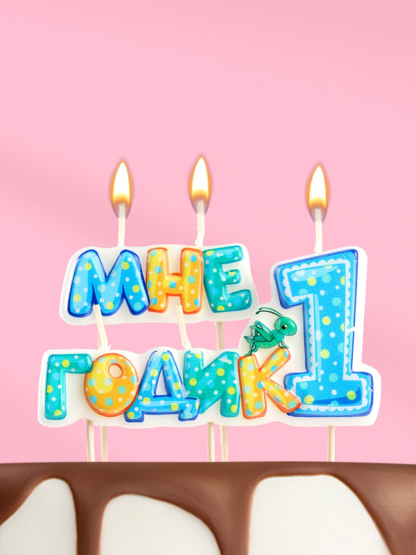 9291551 Набор свечей в торт "Мне 1 годик!" для мальчика