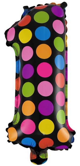 Ч 3151 Фольгированная "Цифра 1. Разноцветные круги" Высота 40 см. (под воздух)