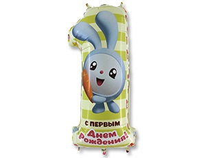 AN 1207-2218 Фольгированная цифра "С Первым Днем рождения! Малышарики" Высота 102 см. США (с гелием)