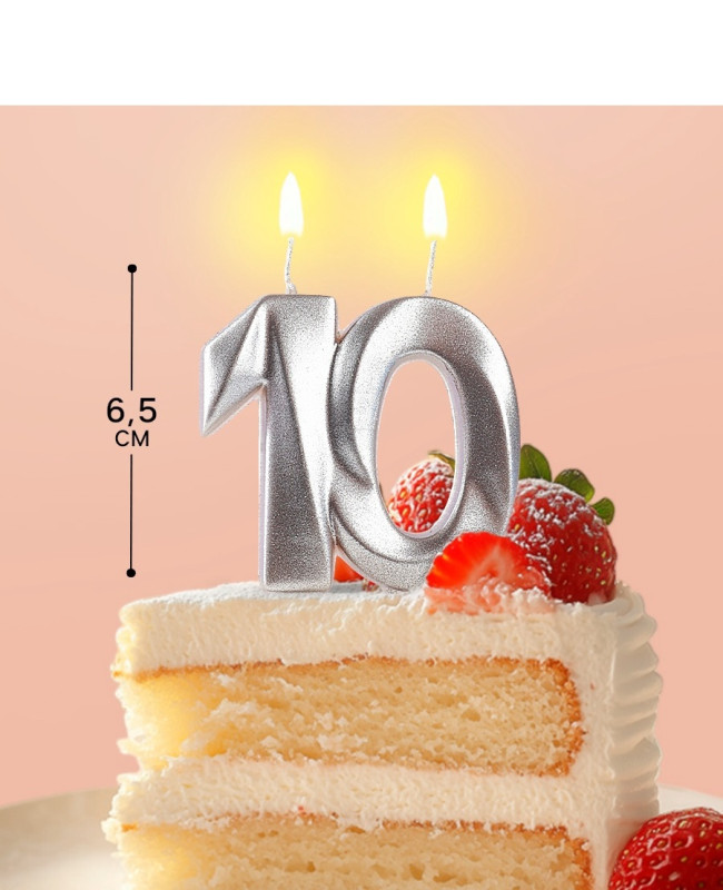 7364720 Двойная свеча в торт "Цифра 10" Цвет серебро