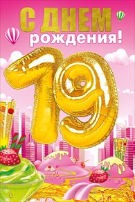 060.405 Открытка "19 лет.Воздушные шары и пирожное" Формат А5