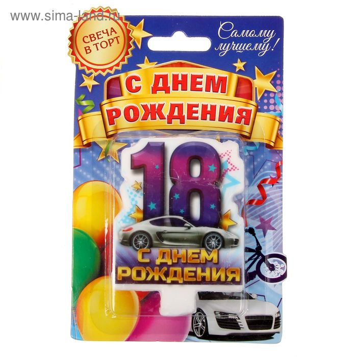 1394632 Свеча для торта "Цифра 18.С Днем рождения" для мальчиков