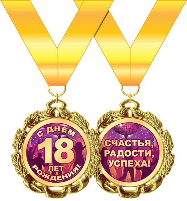 58.53.223 Медаль металл "18 лет.С Днем рождения!" на ленте.Диаметр 6,5 см.