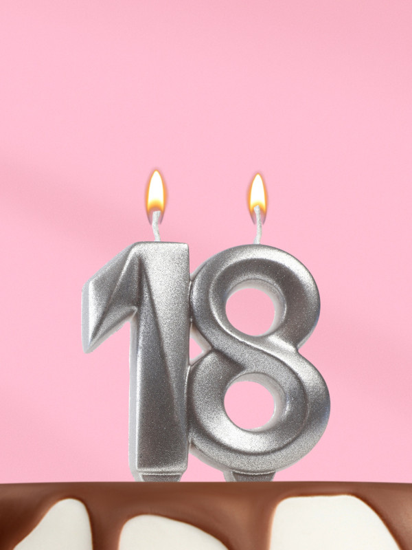 7364721 Двойная свеча в торт "Цифра 18 лет" Цвет серебристый