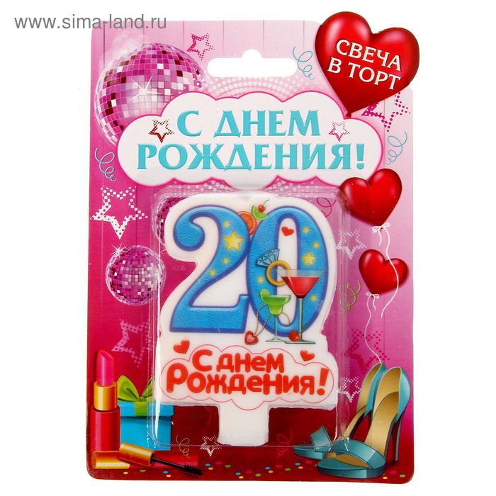 1432836 Свеча для торта "Цифра 20.С Днем рождения" для девочек