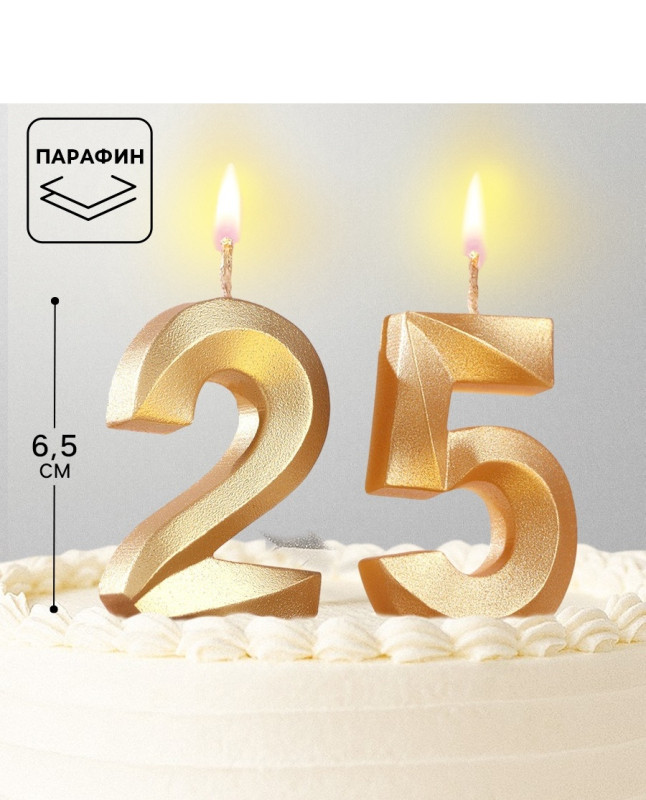 9305488 Свеча в торт "Цифра 25 лет" (набор 2 в 1) Цвет золотистый