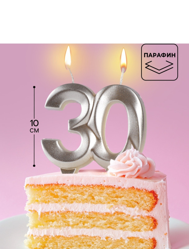 7364715 Двойная свеча в торт "Цифра 30 лет" Цвет серебро