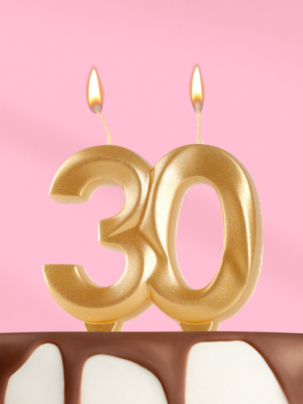7664831 Двойная свеча в торт "Цифра 30 лет" Цвет золотистый
