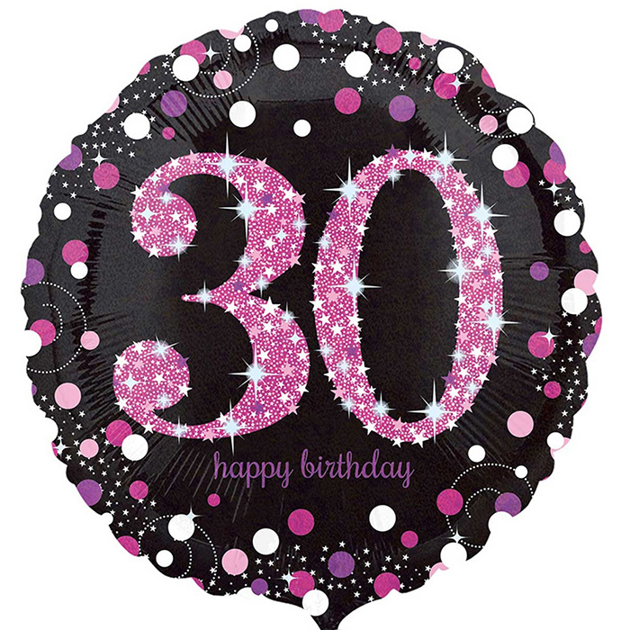 AN 33785 Фольгированный круг "Happy Birtday! 30 лет" для девочки. Диаметр 45 см. США (с гелием)