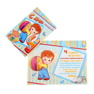 1031649 Открытка "4 годика. Мальчик с мячом" Формат А5