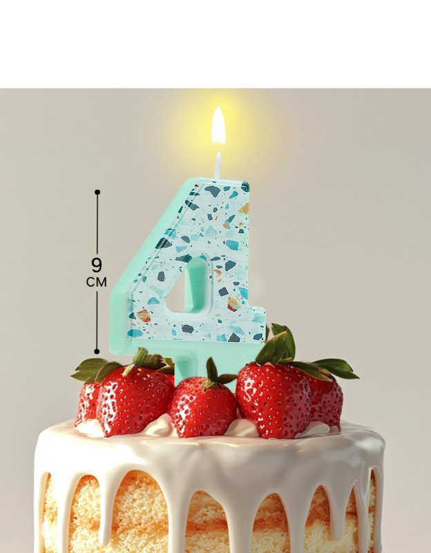 10603255 Свеча в торт "Цифра 4 Ментоловая мозаика" Высота 8 см.