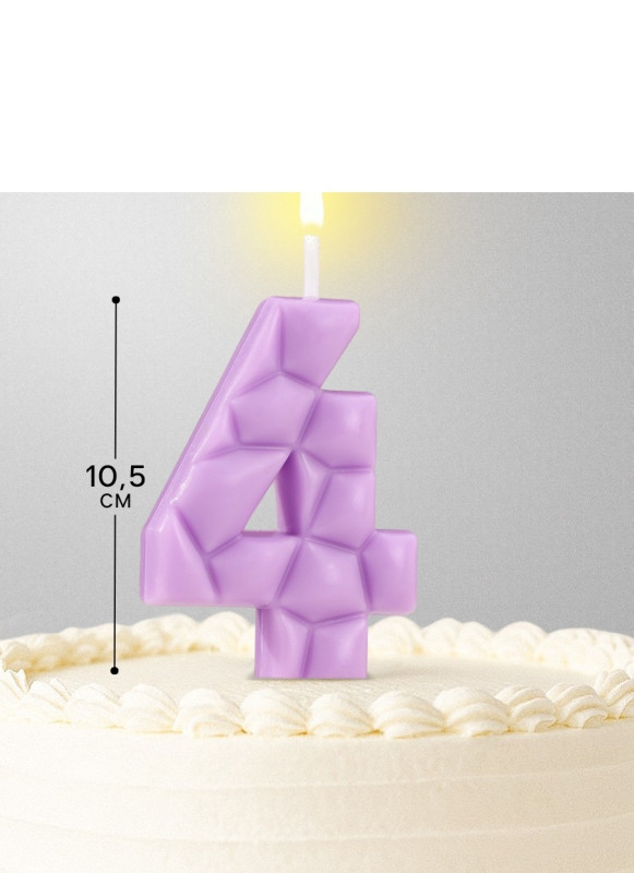 10603313 Свеча в торт "Цифра 4 Сиреневая" на шпажке Высота 5 см.