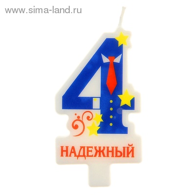 121641 Свеча в торт для мальчика "Цифра 4. Надежный"